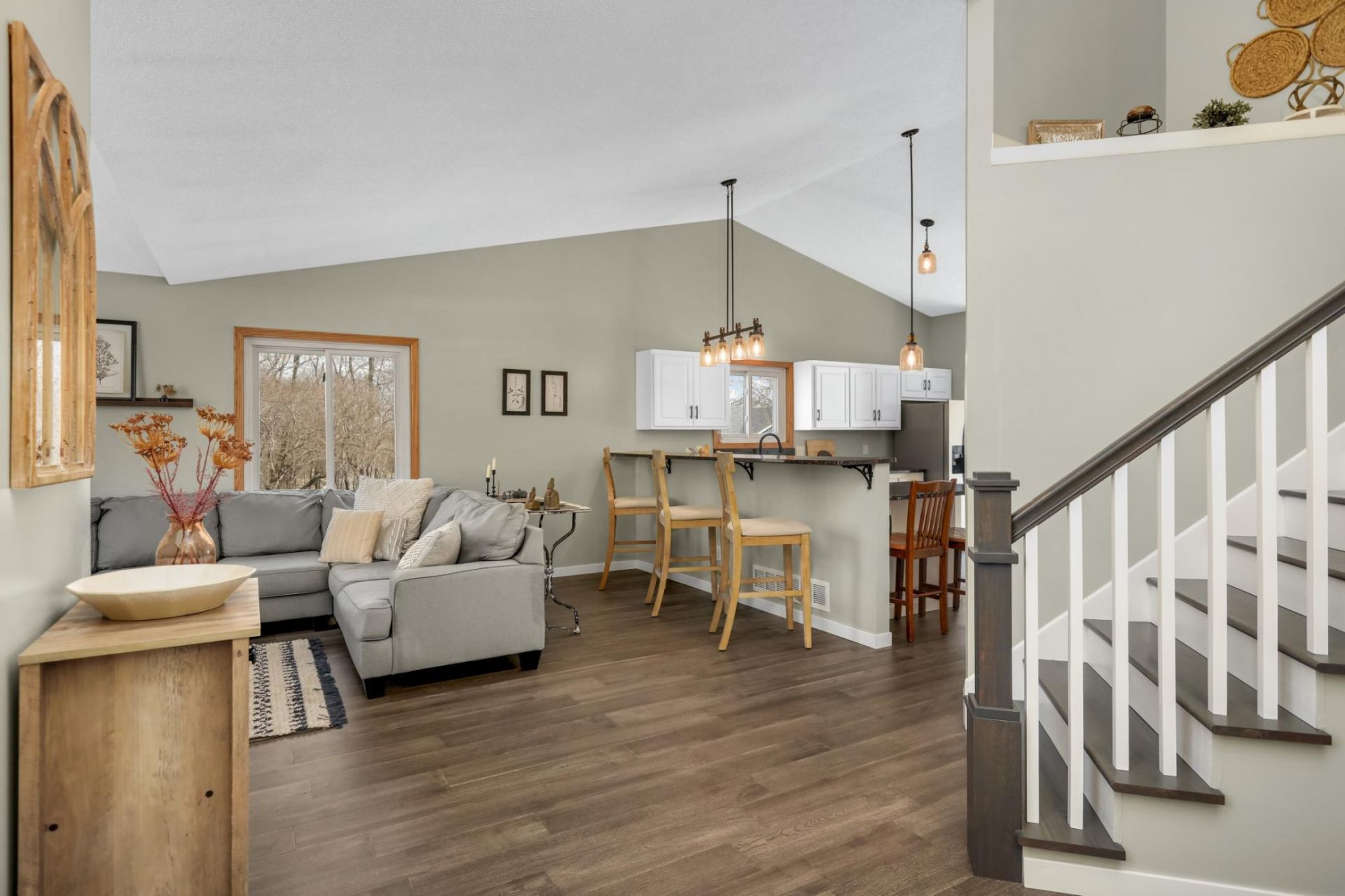 Nestled in this highly sought-after pocket of Elk River, this stunning home is tucked into a lovely quiet neighborhood, while being convenient to restaurants and shopping. Situated on a beautiful .29 acre corner lot, you will love the spacious backyard with mature trees! This gorgeous home boasts 4 bedrooms, 2 bathrooms, & a large 3-car attached garage. The newer deck and open floorplan make this home perfect for entertaining and summer BBQ's! The kitchen is beautiful with granite countertops, fresh white cabinetry, stainless steel appliances, and a fantastic breakfast bar opening up into the living room! The vaulted ceilings and all of the natural light pouring in make this home feel so light and airy. The extensive list of updates includes: updated engineered hardwood floors, new carpet, fresh paint, updated light fixtures, new trim throughout, new interior stairs and bannisters, 8 new interior door, and a new deck(just to name a few!) Imagine morning coffee and evening BBQ's on your deck. This home is move in ready! Welcome home!