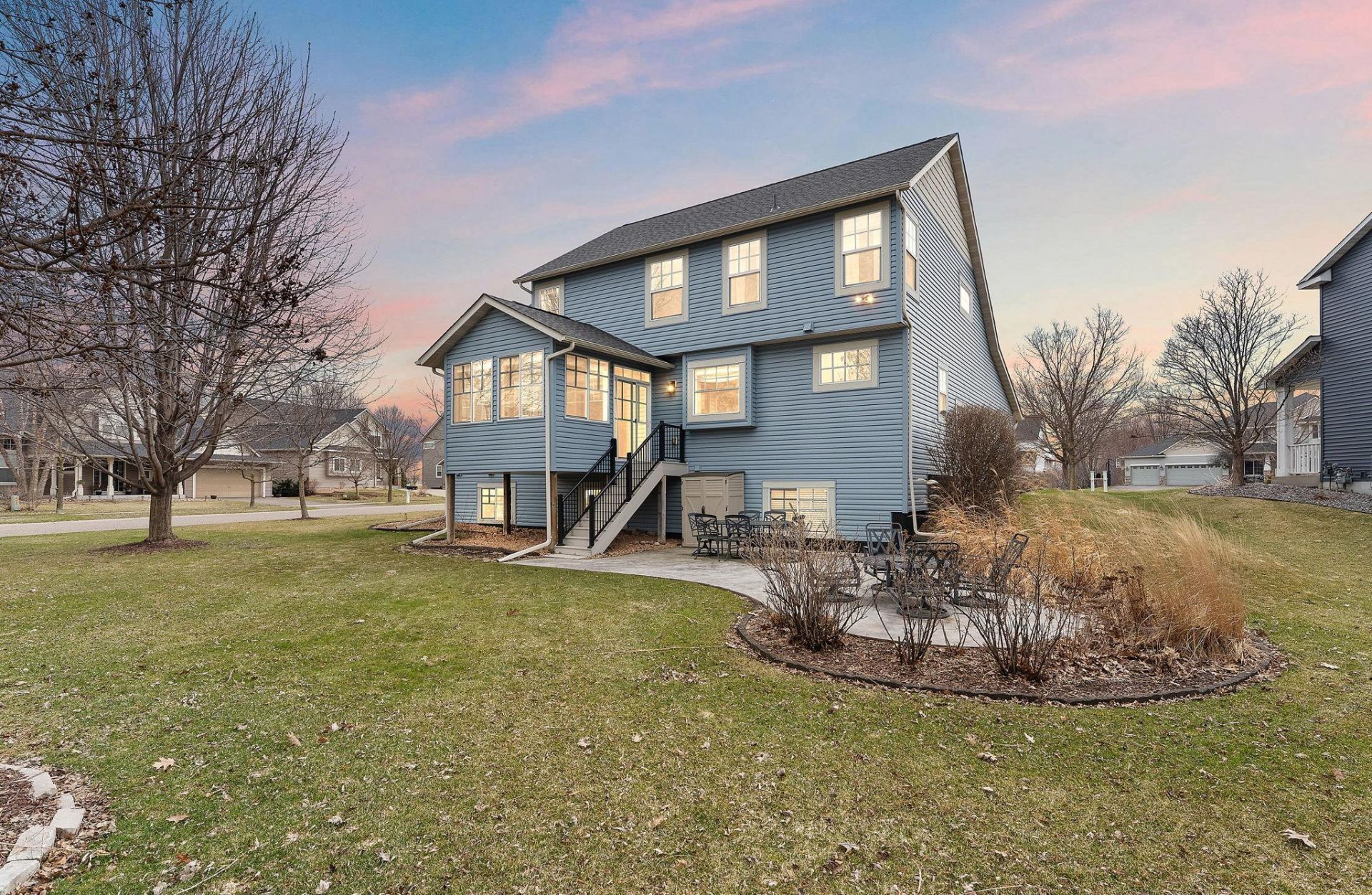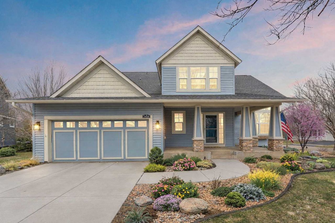Nestled in the prestigious Stonemill Farms community, this stunning residence is a true masterpiece, offering exceptional quality, abundant amenities, and an impressive array of dream-home features. Perfectly positioned on a premium cul-de-sac corner lot, the home faces a charming island, with a scenic sidewalk trail just to the south?enhancing both beauty and walkability.The welcoming covered front porch sets the tone for the elegance within. Step inside to an open, thoughtfully designed floor plan that seamlessly blends grand entertaining spaces with comfortable everyday living. Gleaming, real broad-plank cherry hardwood floors flow throughout the entry, dining area, and kitchen. The main level features a stylish front office?ideal for working from home or relaxing?as well as a spacious walk-in entry closet. The expansive two-story great room showcases a cozy fireplace and striking architectural details, creating a warm yet sophisticated ambiance. At the heart of the home is the gourmet kitchen, beautifully appointed with rich cherry cabinetry, a center island, tile backsplash, stainless steel appliances, and an oversized walk-in pantry?so generous it could easily double as a craft or hobby room. The adjacent dining area flows effortlessly into a breathtaking four-season porch, where you can enjoy sun-filled views and the beauty of all glorious Minnesota seasons year-round?sure to become your favorite retreat.Upstairs, the luxurious owner's suite is a true sanctuary, featuring a vaulted ceiling, spa-inspired private bath, walk-in closet, and elegant finishes. Three additional spacious bedrooms complete the upper level.The finished lower level offers a large family room with a rough-in for a future wet bar, providing excellent potential for entertaining or additional living space.Step outside to a beautifully landscaped yard?your own private oasis?complete with a paver patio and deck, perfect for outdoor gatherings.Additional highlights include an oversized three-car tandem garage (664 square ft) and an unbeatable location?just a short one-block walk to the neighborhood park. Highly rated schools, including Liberty Elementary, are just around the corner, with zoning to East Ridge High School.Enjoy access to top-tier community amenities, including a pool, fitness center, hockey rink, basketball courts, and community centers?all just moments away.